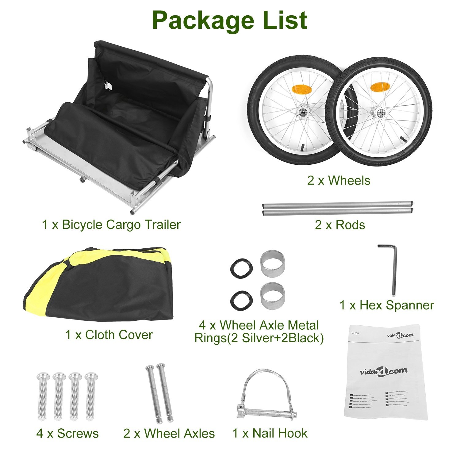 *Solid Construction*:Made of durable iron tube and a solid platform,the bicycle trailer can hold items up to 176lbs and secure them in place steadily when in motion.