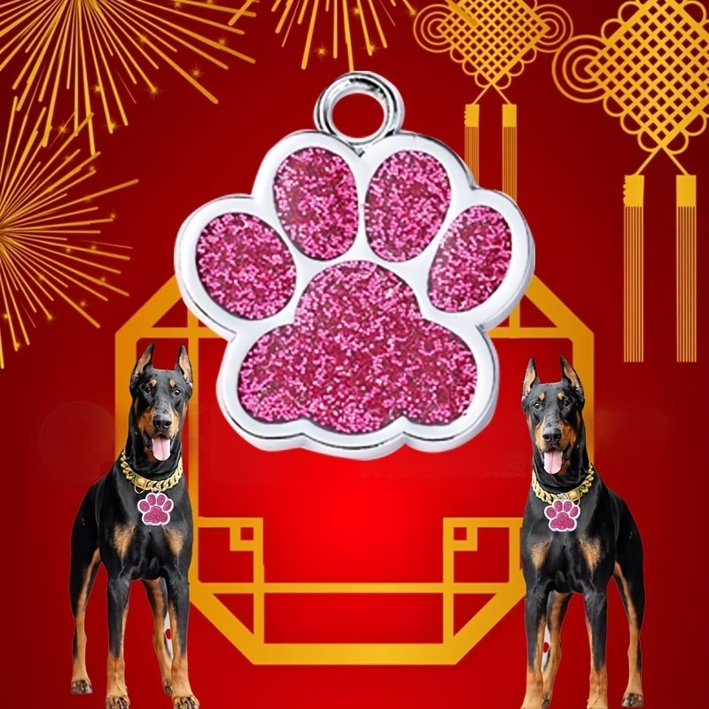 New Year Pet ID Tags; Personalized Dogs Tags; Footprint Engraved Dog Tag Ornament