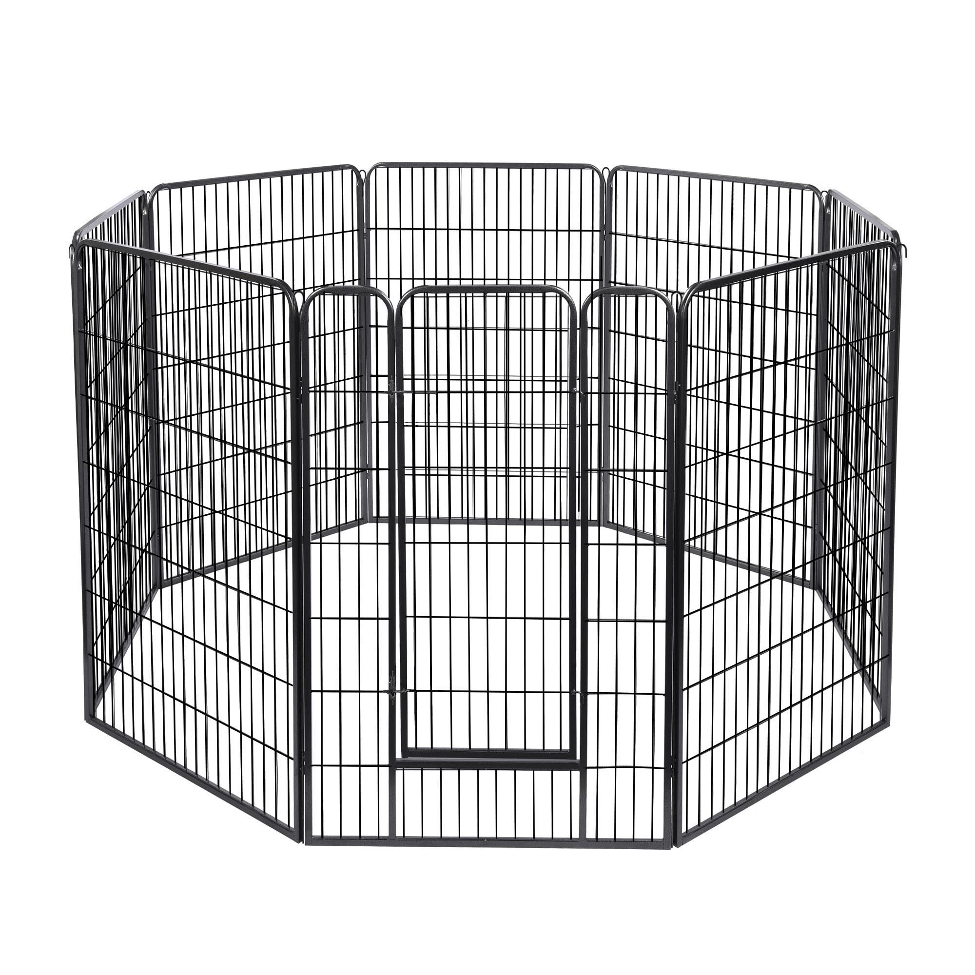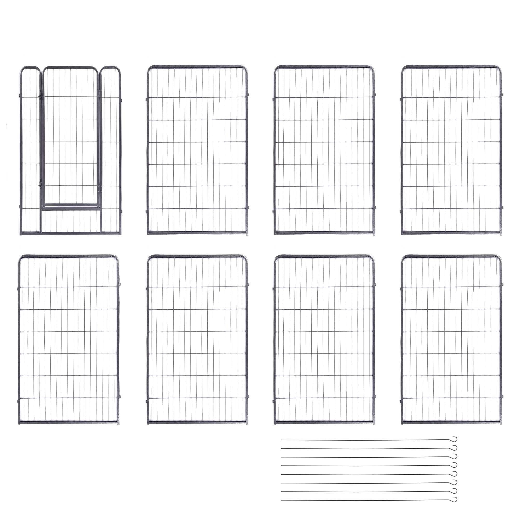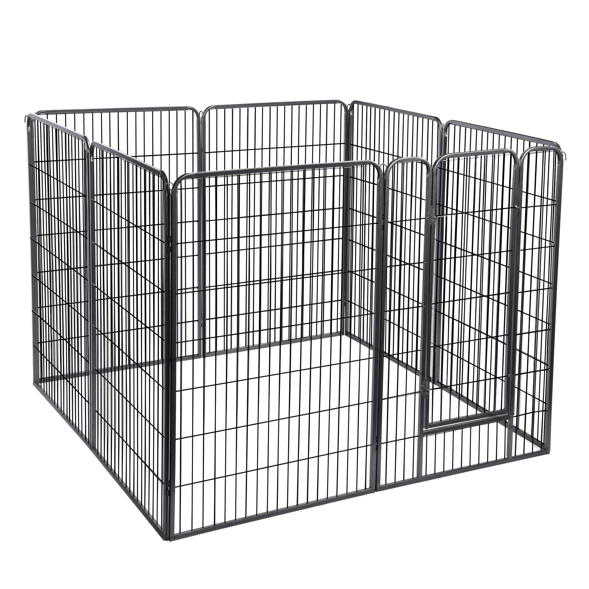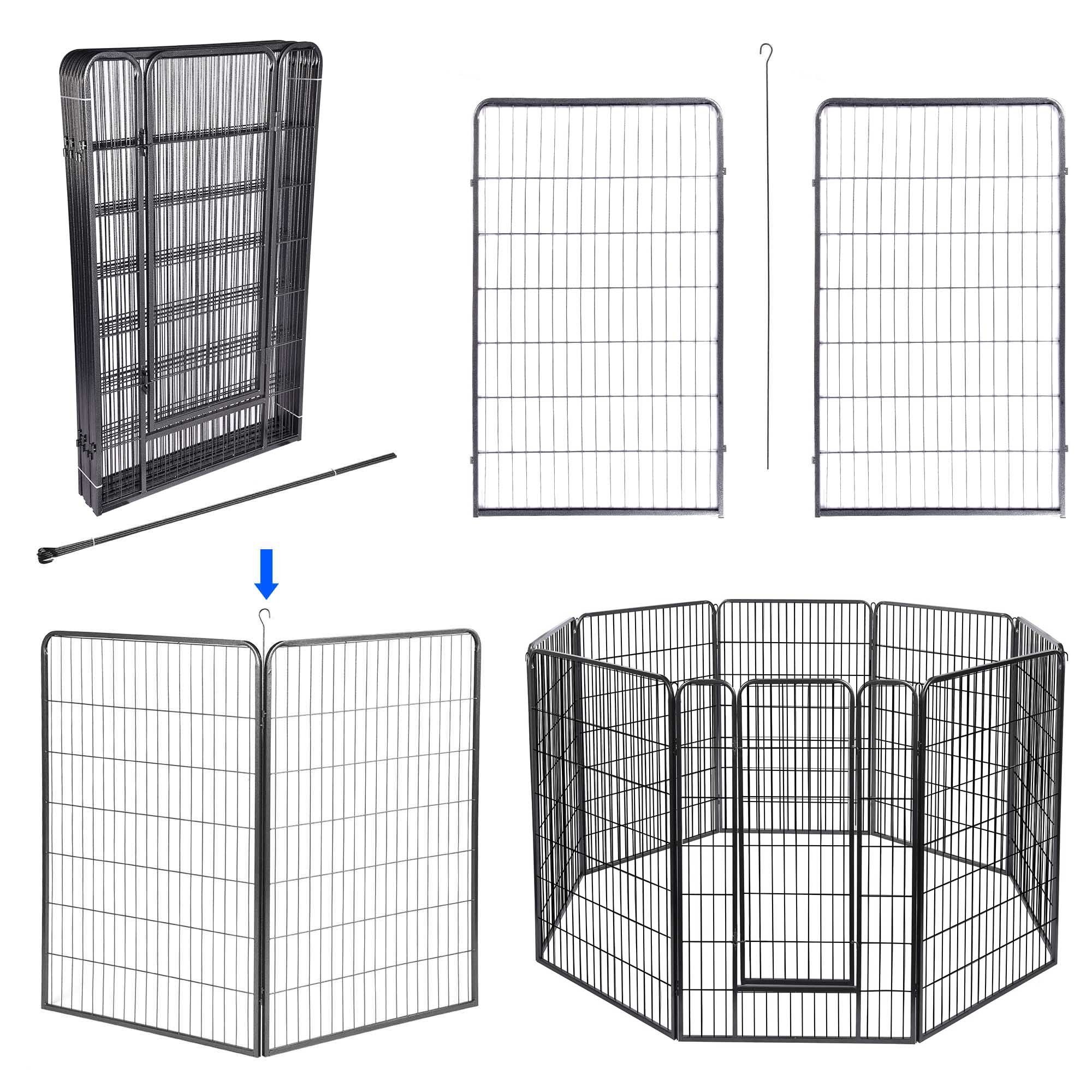 - Rust-resistant & Sturdy Fence - 8 pieces 28"Wx47"H Pet Playpen Panel is made of powder coated metal for great rust resistance, and keeping panel sleek and beautiful; 0.6"x0.6" square tube guarantees rigidity to withstand the weight of pet, ground stakes for firmly fixating the panels on the ground in outdoor space