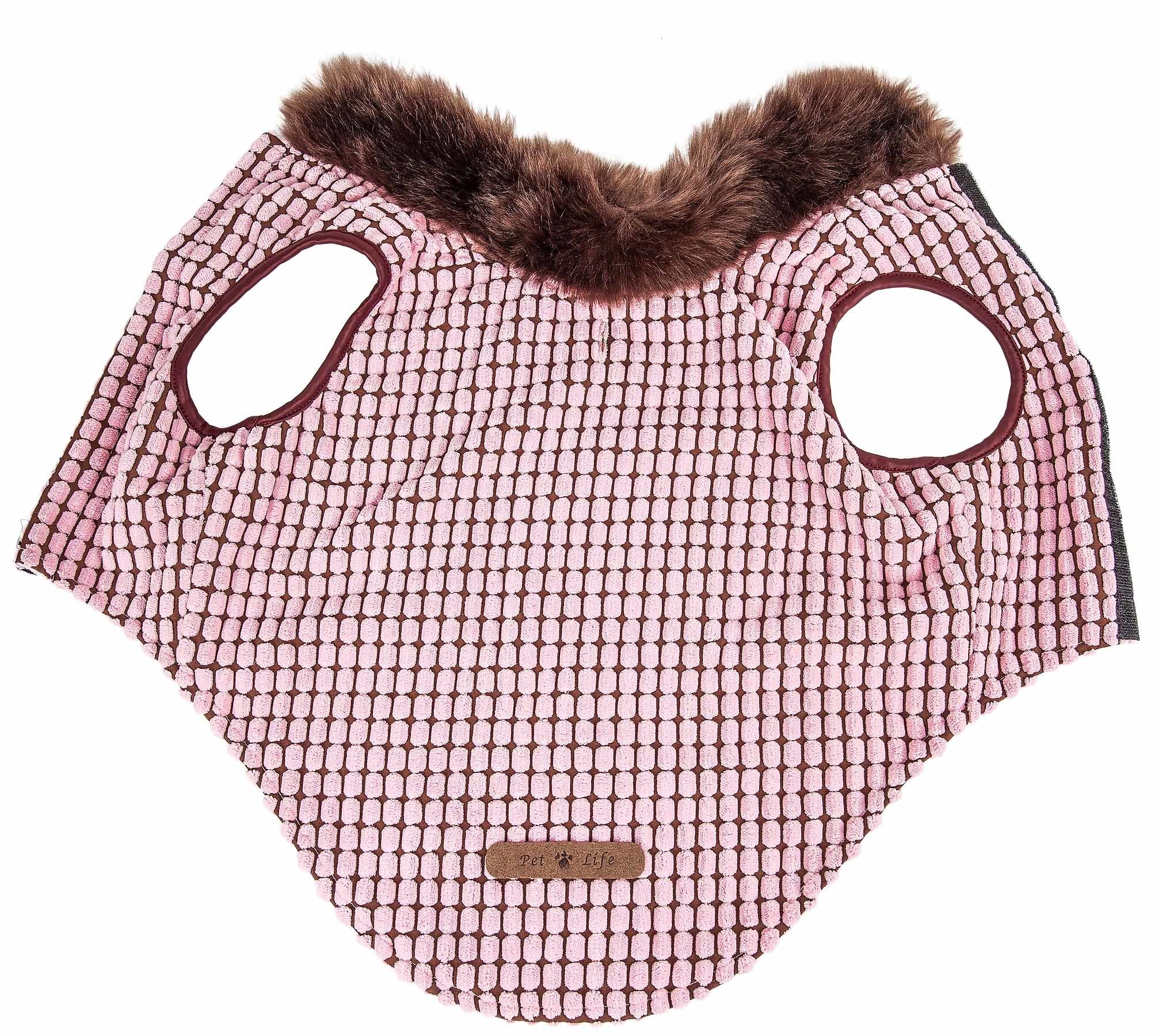 The Pet Life LUXE 'Beautifur' Elegant Designer Boxed Mink Fur Dog Coat Jacket features a beautiful Pink and Mudd-brown Faux-Fur patterned box print that is ultra-soft. This luxurious coat also features a magnificent accented faux-fur Dark-Brown collar that is soft and feathery. Features Tough-Grade Velcro belly closures for convenient on and off access and a leash slit below the Neck line. This jacket is part of our Pet Life Luxury collection. Available in Multiple Sizes.