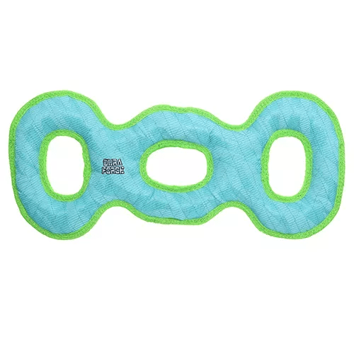 DuraForce 3WayTug Tiger Blue-Green. Durable Thick Woven Outer Material Makes this toy thicker and stronger than many multiple layer toys. Great for interactive play with one or multiple dogs. Best for dogs who like to whip their toys and play tug for hours. Floats in water, and its machine washable, (air dry). 2 LAYERS OF MATERIAL Duraforce toys are made with UP TO 2 layers. The exterior mesh is thicker that most multiple layer toys!