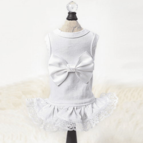 Be ready for any recital with the Hello Doggie Ballerina Dress. Fashioned with satin bow and accent with a lace trim for that extra twirl.