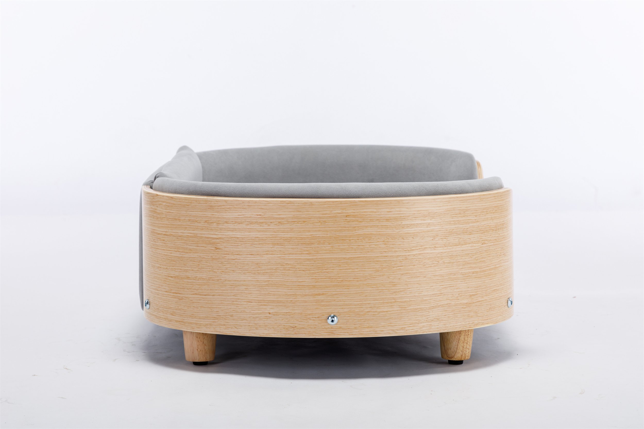 Scandinavian style Elevated Dog Bed Pet Sofa With Solid Wood legs and Bent Wood Back, Velvet Cushion,Mid Size Light Grey