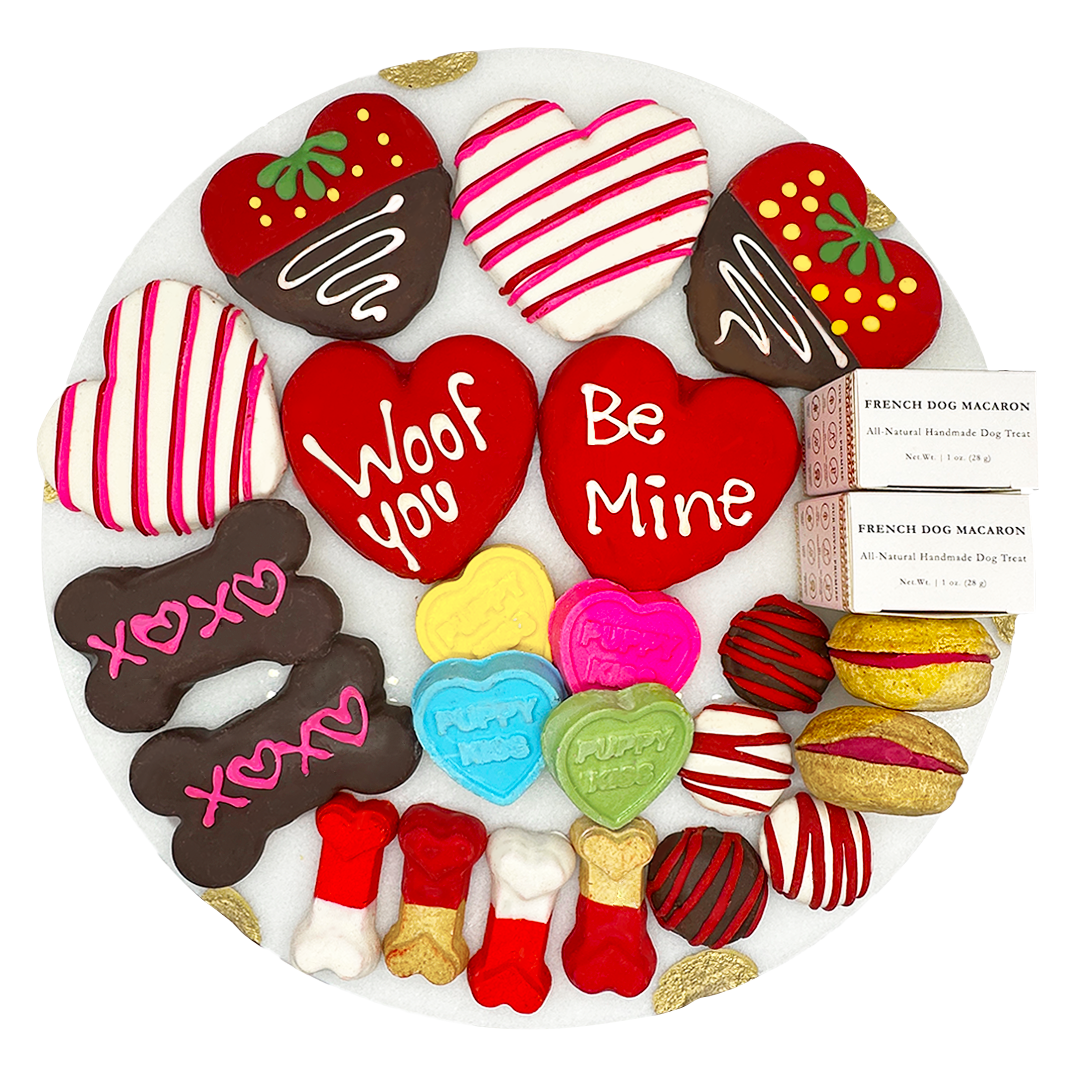 - Includes 22 themed treats including various sized hearts, dog bones, macarons, and truffles, etc.